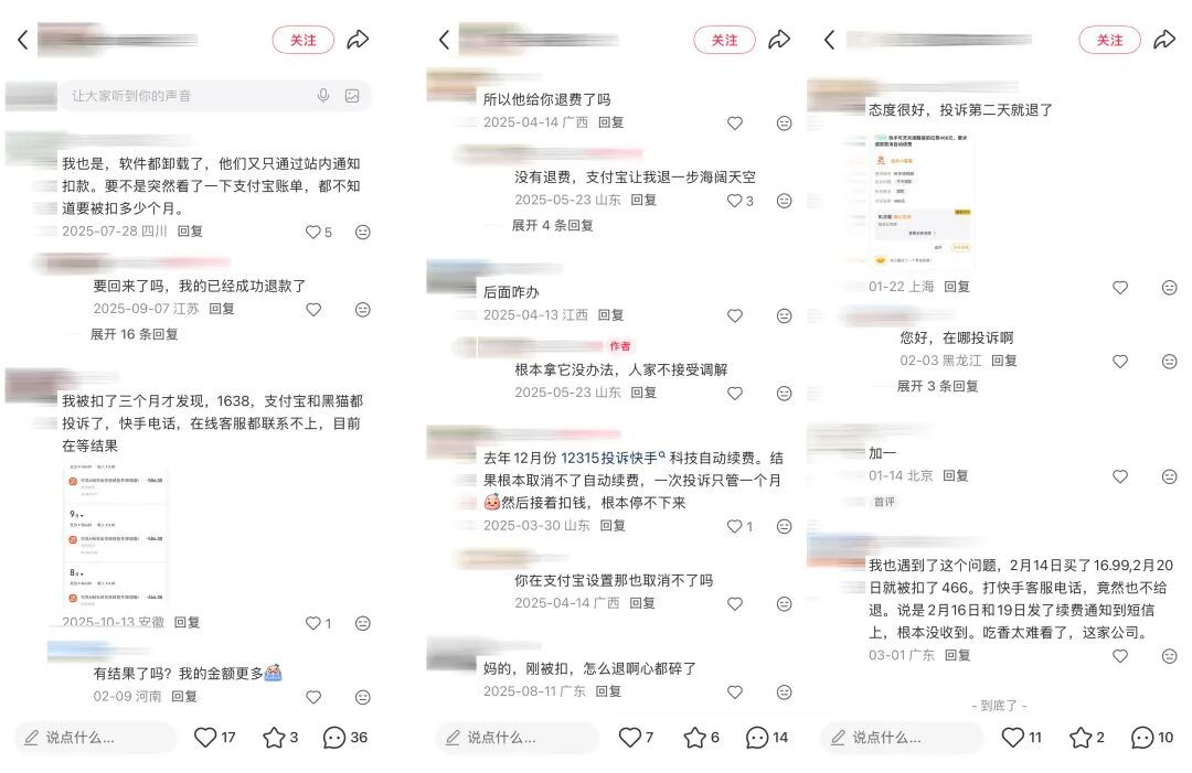另有糟践者称:“我被扣了三个月才发现,1638元,支付宝和黑猫都投诉了,快手电话、在线客服都连络不上,当今在等效果。”处境与米萌极为同样。天然,也有部分糟践者通过黑猫投诉平台得手维权。