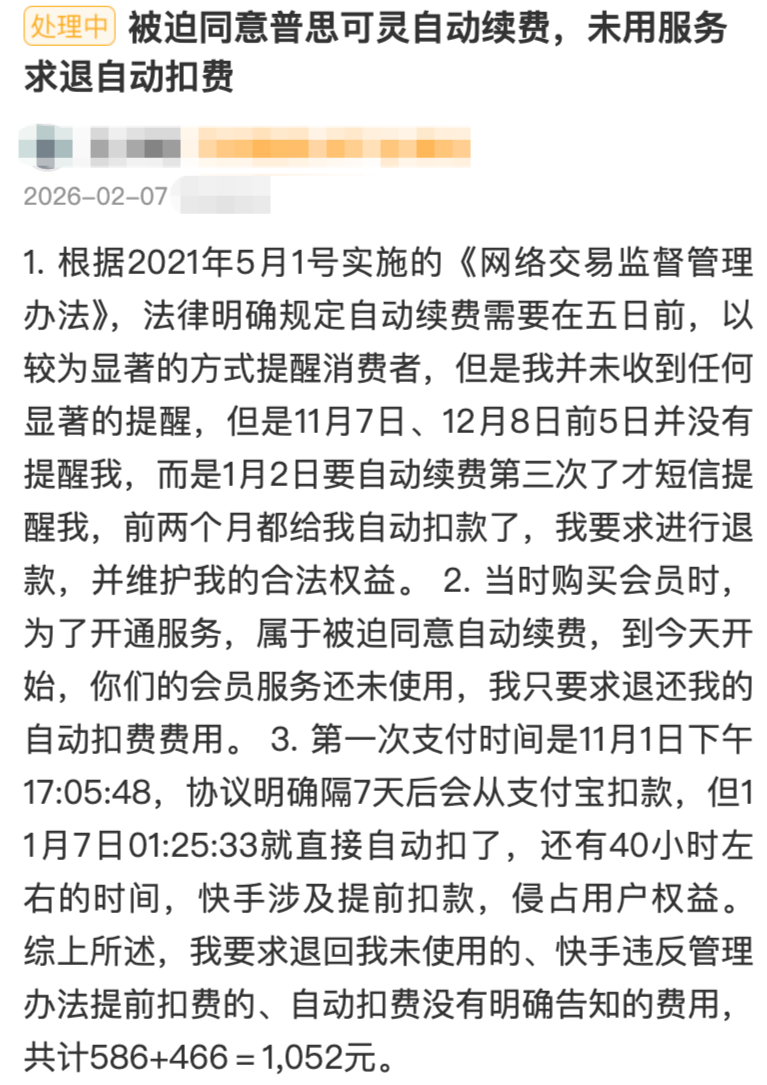 近日,糟践者米萌(假名)反馈,快手旗下AI家具“可灵AI”存在自动续费指示不昭彰、疑似违章提前扣款等问题,导致她在两个月内累计被扣费1052元。