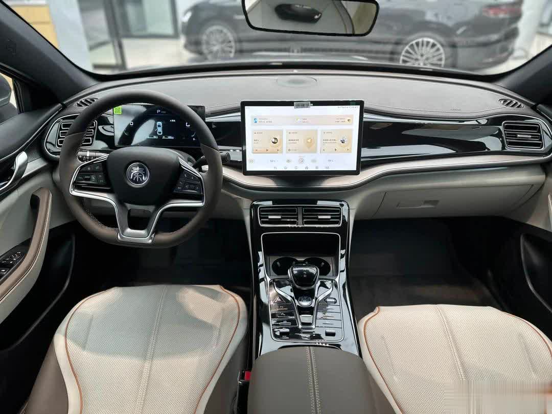 内饰方面,这款车环抱式中控狡计,配备了10.1英寸的触控液晶屏(高配车型为12.8 英寸)和8.8英寸的液晶姿首,车机内置DiLink 4.0 智能网操办统,科技感皆备。电子怀挡狡计,让中控区域愈加纯粹。