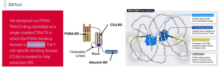 如今新一代靶向PSMA的TCE运行瞎想的越来越复杂,不仅畏怯于CD3臂引起的T细胞过度活化导致的CRS/ICANS,同期还要接洽靶向肿瘤组织臂靶点准确在瘤内开释,以免引起脱靶毒性。
