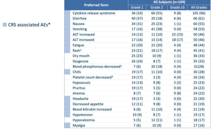 ● RP2D安全组(n=45,每三周或到六周和洽一次,100%采纳过AR扼制剂、75.6%采纳过紫杉醇化疗):CRS发生率为8.9%且均为1级,未不雅察到免疫效应细胞关连神经毒性笼统征(ICANS),主要常见和洽关连不良反映事件为1/2级注输关连反映,3级事件不常见(4.4%患者一忽儿AST/ALT及中性粒细胞减少)