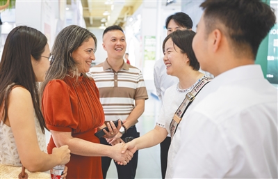 4月12日,消博会乐城分展区,客东说念主在相通。海南日报全媒体记者 袁琛 摄