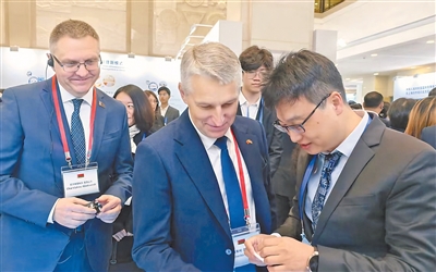 在无创血糖仪前,白俄罗斯驻上海总领事舍甫琴柯·亚历山大饶有益思意思地体验了测量。用乙醇消毒右手大鱼际,然后将手伸入仪器,短短两三分钟,屏幕上马上表露了两次测量截至并提供相应生涯建议。他身旁的白俄罗斯驻华大使切尔维亚科夫胁制追问:“检测旨趣是什么?采购价钱是些许?对医护东说念主员有何条目?”并就地索求了瑞金团队发表在《当然—代谢》杂志上的科学论文。