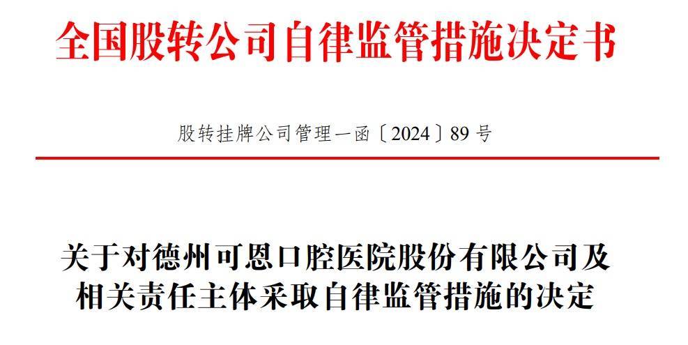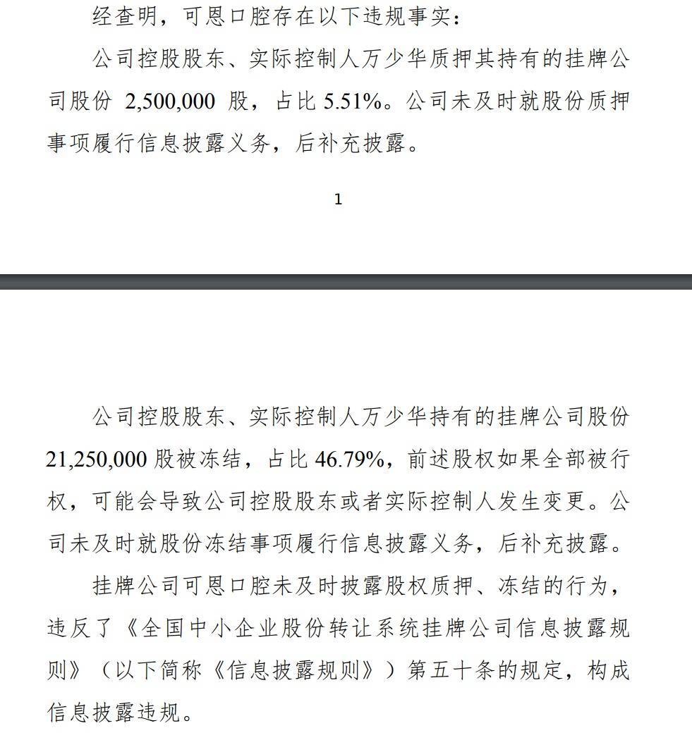 划定现在,已有媒体就供应商疑似与可恩口腔存在关联一事发送采访函,划定关联报说念发布时,尚未收到公司回报。如该信息坐实,可恩口腔或涉嫌消散关联方的非法操作。值得一提,可恩口腔在信息线路方面曾有过非法记载。2024年9月25日,寰宇股转公司发布自律监管表率决定书,指出可恩口腔控股鞭策、实质限制东说念主万少华捏有的250万股股份质押(占总股本5.51%)及2125万股股份冻结(占总股本46.79%)事项,公司未实时奉行信息线路义务,直至后续才补充线路。该股权冻结事项若沿途行权,可能导致公司限制权发生变更。最终,寰宇股转公司对可恩口腔、万少华及公司董事会文牍姬涛领受出具警示函的自律监管表率,并将非法举止记入证券期货市集诚信档案数据库。