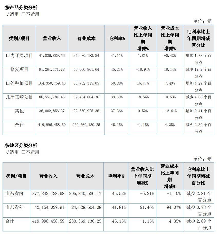区域布局上,可恩口腔现在仍以山东省内市集为中枢,2024年省内市集营收3.78亿元,同比着落6.21%;省外市集营收0.42亿元,同比增长91.46%。