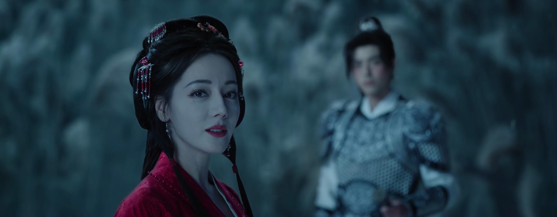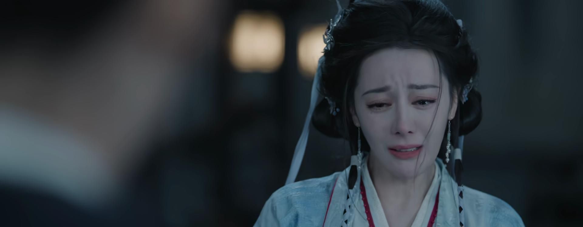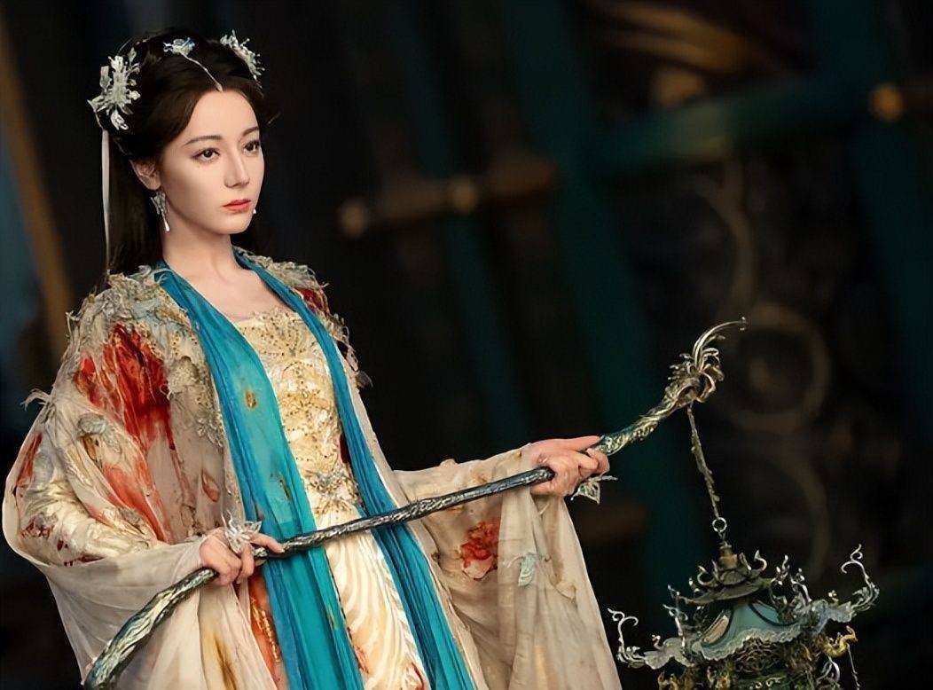 迪丽热巴身着素绢广袖长裙,青丝半挽垂落肩头,眉宇间是统御万灵的疏离威仪,唇角微扬又透出未经世事的娇憨。