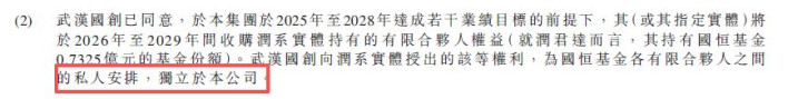 此外,国恒基金最大的有限结伙东说念主武汉国创翻新投资有限公司已快乐,在华工科技于2025年至2028年达成些许功绩标的的前提下,武汉国创或其指定实体将于2026年至2029年间收购润系实体合手有的有限结伙东说念主权益。