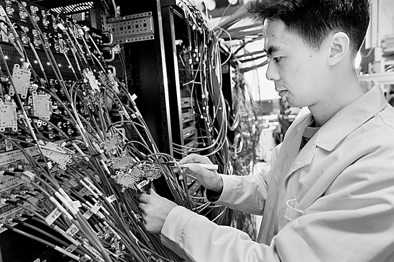 在中国科学院物理磋磨所实验室,科研东说念主员在操作测控接线。新华社发
